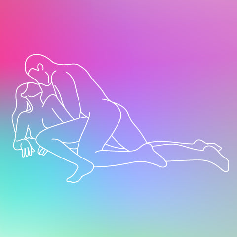 This position leaves a lot of open space around the receiver where they can experiment with extra angles and creative ranges of motion. They're in control of the depth, speed, and intensity, and can use the other person's leg to help prop themselves up or get more leverage and power. If you're on top and have a clitoris, try grinding it against your partner's leg (with some extra-slippery lubricant of course) for some extra external stimulation, or if you have a penis, keep one hand on your lover's knee for support while you stroke yourself with the other! A vibrating penis stroker like the Fun Factory Manta is the perfect lightweight toy that can be used on the whole shaft, or even the very base of a lover's penis for pleasure that's as versatile as you two are.