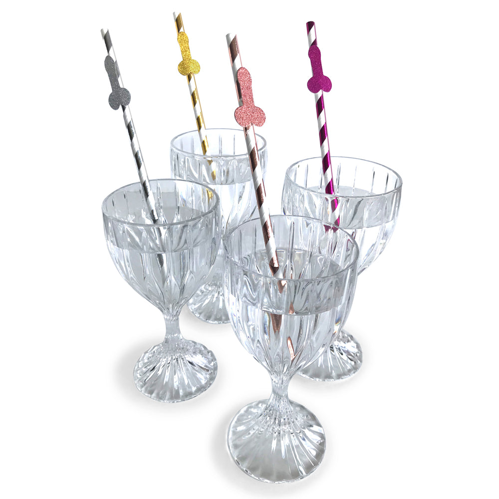 These long paper straws feature glittery peckers with a wraparound detail in stylish shades of metallic gold, silver, rose gold, and pink to liven up your beverages. This 8-pack of tall drinking straws is the perfect novelty addition to hens' parties, adult birthdays, or a good old-fashioned girls' night in!