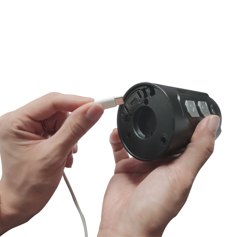 The Leto Electric Vacuum Penis Pump comes with a soft silicone donut that fits around the mouth of the pump and creates a tight yet comfortable seal around your shaft to prevent unwanted loss of pressure inside the chamber. The clear cylinder lets you watch your progress in real-time and also has metric centimetre markings down the side so you can measure your new growth right in front of your eyes! Afterwards, the pump's power unit and the cylinder unscrew from each other so you can easily rinse the silicone sleeve and tube with warm water and toy cleaner while the power unit charges with the included USB-C cable.