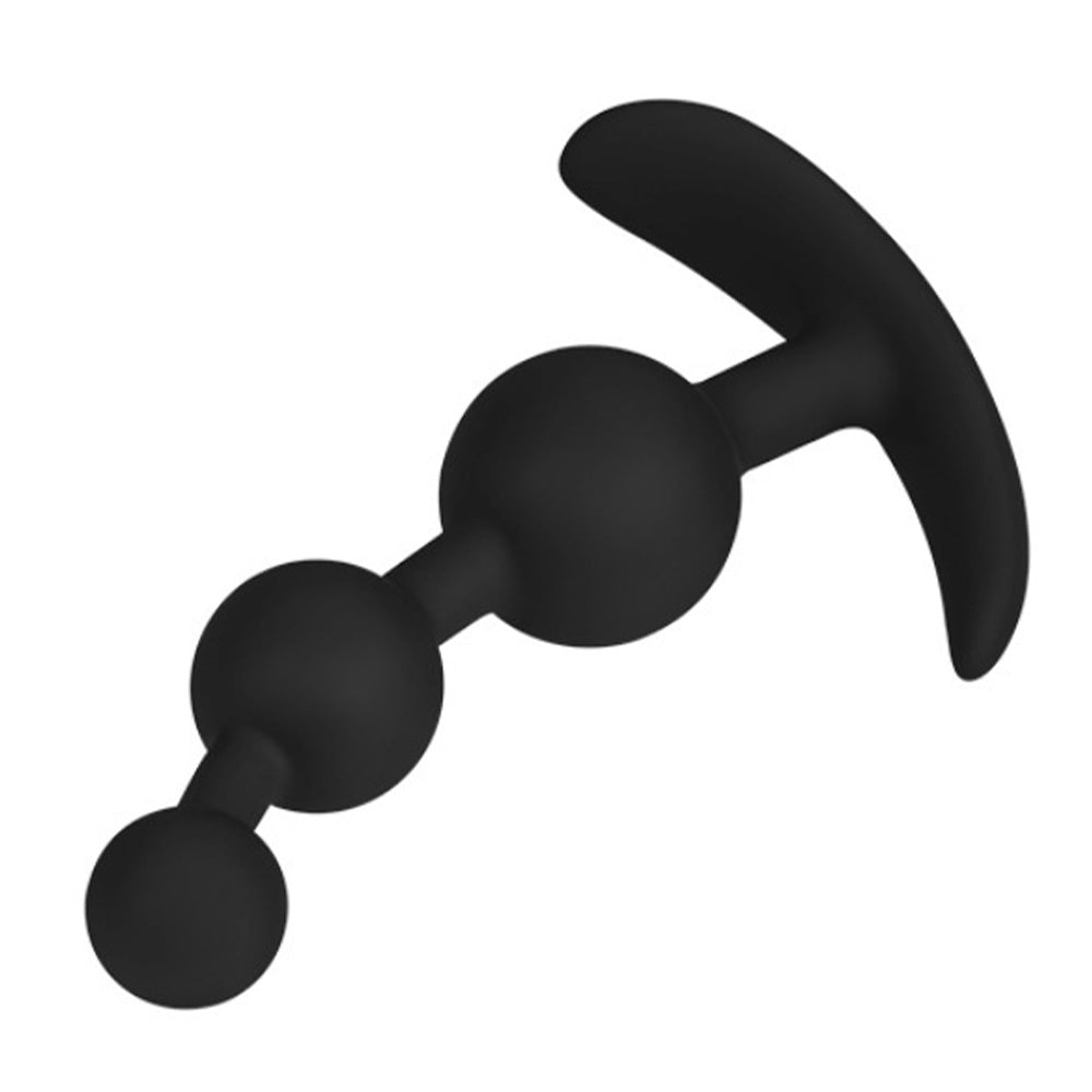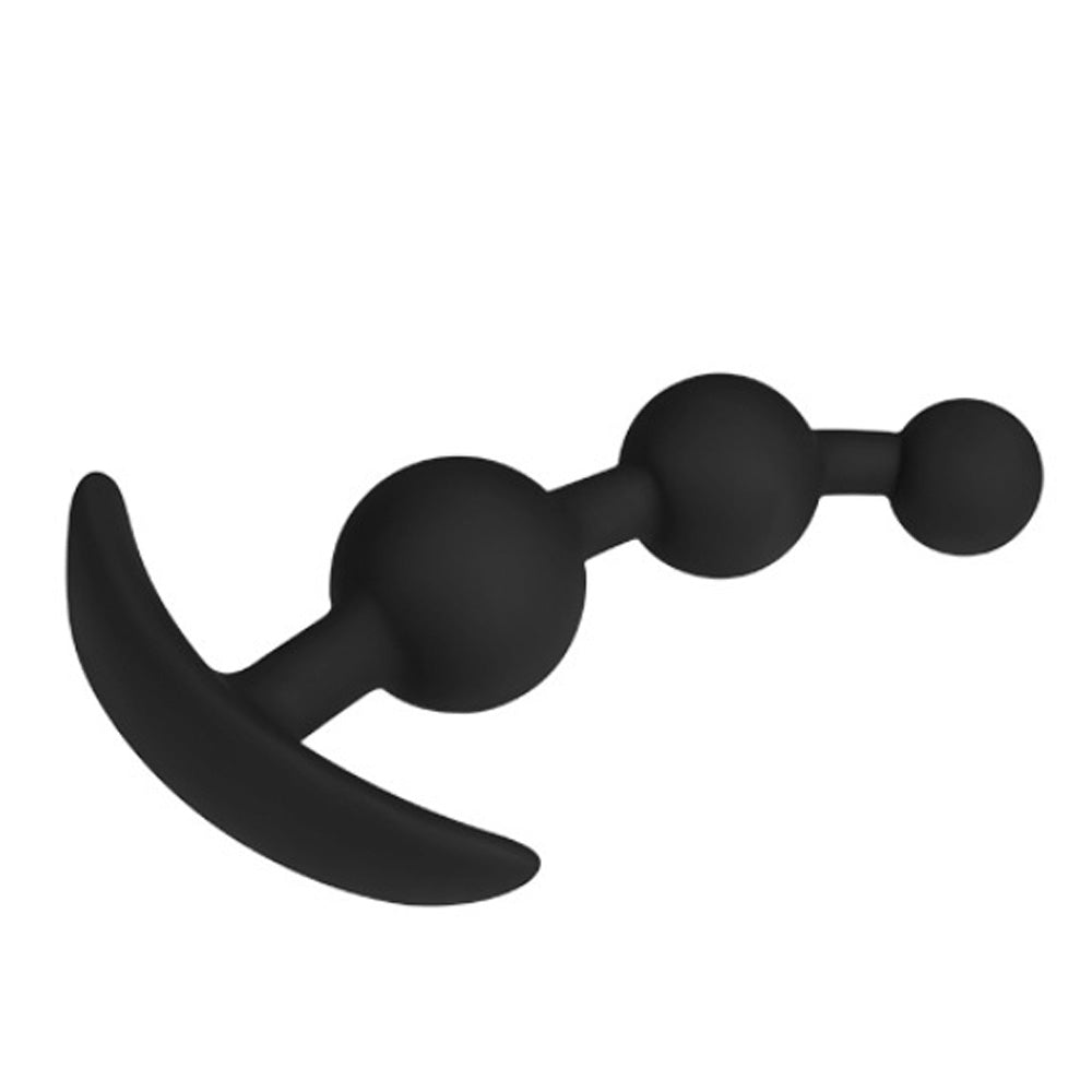This trio of anal beads sits along a flexible body to help each bead hit all the right spots as they slowly glide in and out of your body. The small starting bead provides comfortable insertion and then graduates to two larger beads for pleasure that will leave you feeling oh-so-full! The curved base fits flush between your cheeks, letting you sit comfortably while anchoring the beads at a body-safe depth from outside your body, as well as providing you with an easy-pull handle for simple removal once the fun is done. The silky-smooth silicone is easy to clean with warm water and toy cleaner, perfect for getting your beads squeaky clean and ready to roll the next time you're in the mood for backdoor bliss...