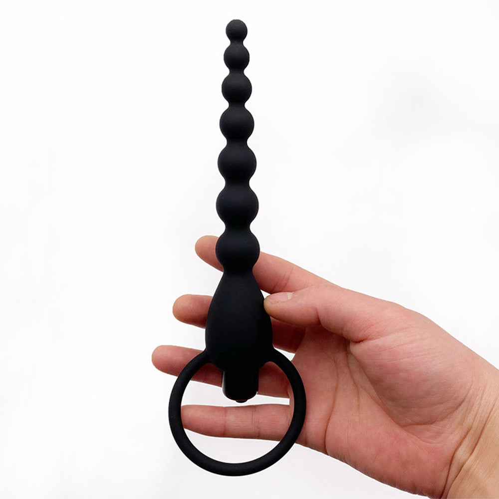 This anal sex toy gives backdoor beginners a nice and easy start with its tiny beads at the tip of the strand that slowly increase in size, graduating to a final plug-like shape at the end just above the easy-pull ring handle. The mini beads are easy to insert and have a flexible shaft to move comfortably with your body. Underneath the beads, a vibrating bullet rumbles in 10 vibration patterns, which you can bring to life with just the touch of a button to fill your booty with the buzzing bliss you crave...