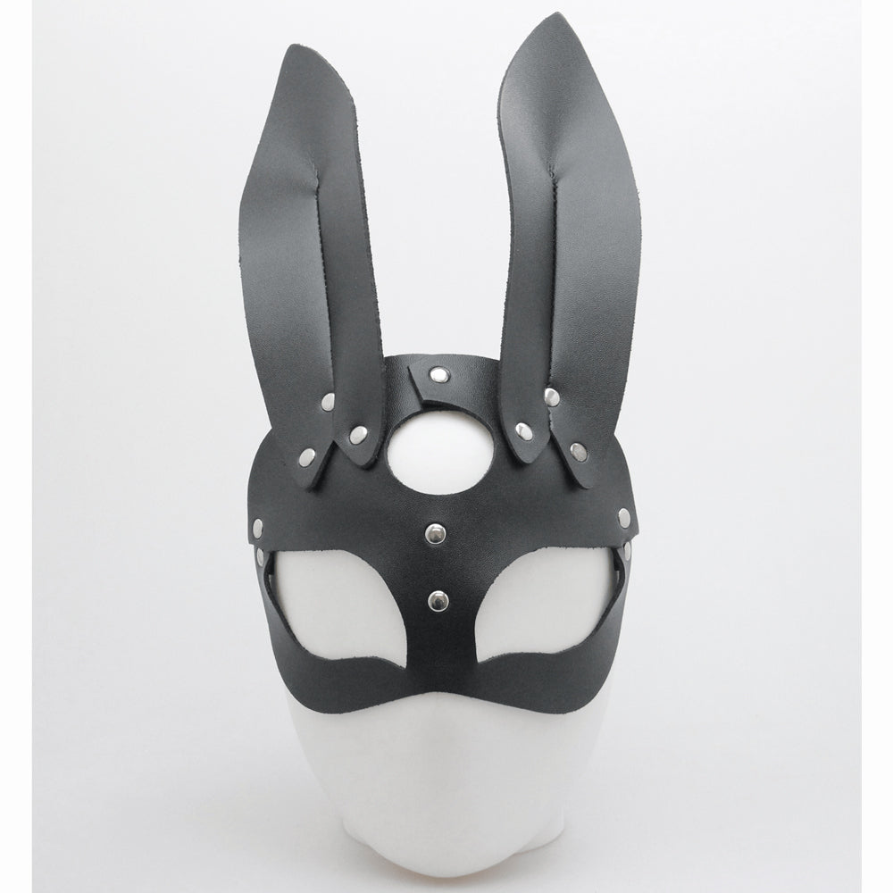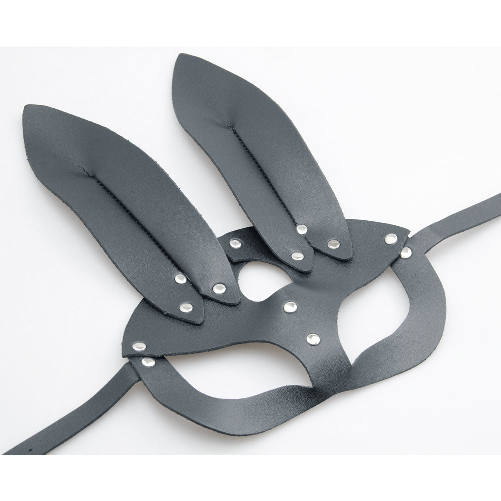 Unleash your inner bad bunny with the Love In Leather Half Face Mask With Rabbit Ears!