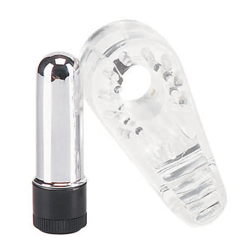 This cockring comes with a removable multi-speed bullet vibrator and is made from super-stretchy silicone to fit snugly around most shaft sizes. The textured nubs offer extra stimulation for a partner's clitoris and labia while the buzzing bullet vibe works its magic for both of you! You can even turn the ring upside down and use the bullet on the wearer's testicles or her perineum for some added versatility...