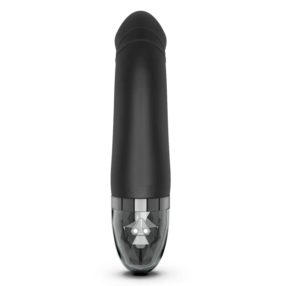 This black vibrator features a phallic tip with a ridged, helmet-like head that feels like realistic penetration and hits the G-spot just right! The angled tip delivers 8 internal vibration modes and 5 independent electro-stimulation functions (plus the kegel training e-stim mode) exactly where you want them. This electrostimulation vibrator is a bipolar toy, with two conductive surfaces running down the sides of the G-spot shaft so the current travels along your inner walls, causing them to contract for a stronger, tighter, more toned pelvic floor. This can result in faster recovery after childbirth, improved continence and bladder control, as well as more intense orgasms more often, and who doesn't want that?
