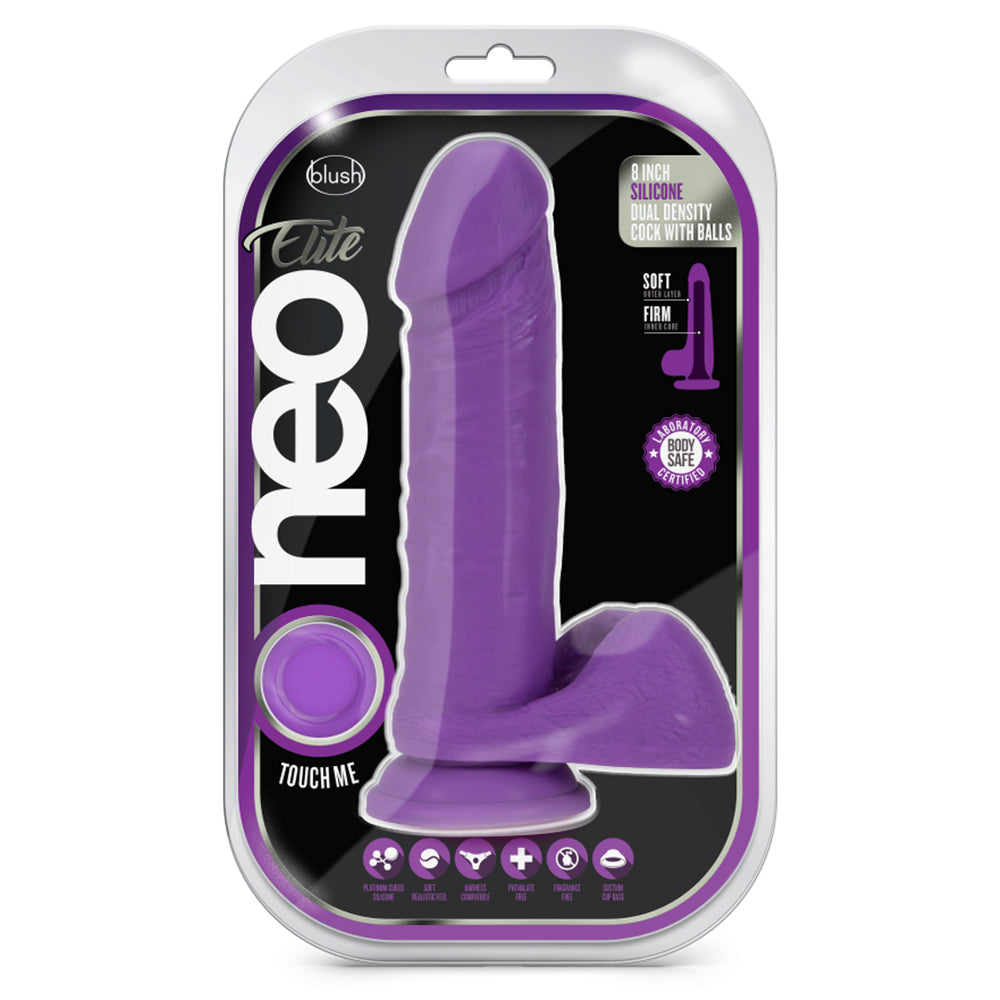 Plunge yourself into (and onto) a world of pleasure with the Neo™ Elite 8" Silicone Dual Density Cock & Balls Dildo!