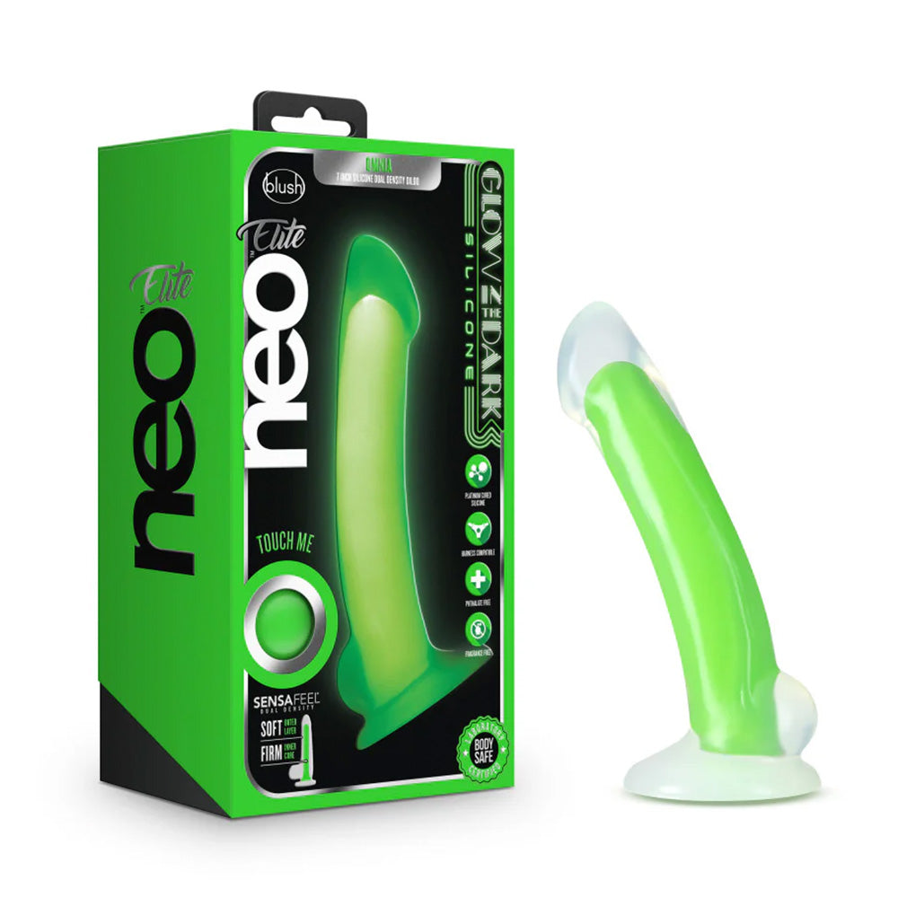 Get ready for lifelike fun that looks as good as it feels with the Neo™ Elite Omnia Glow in the Dark Dual Density Silicone Dildo!