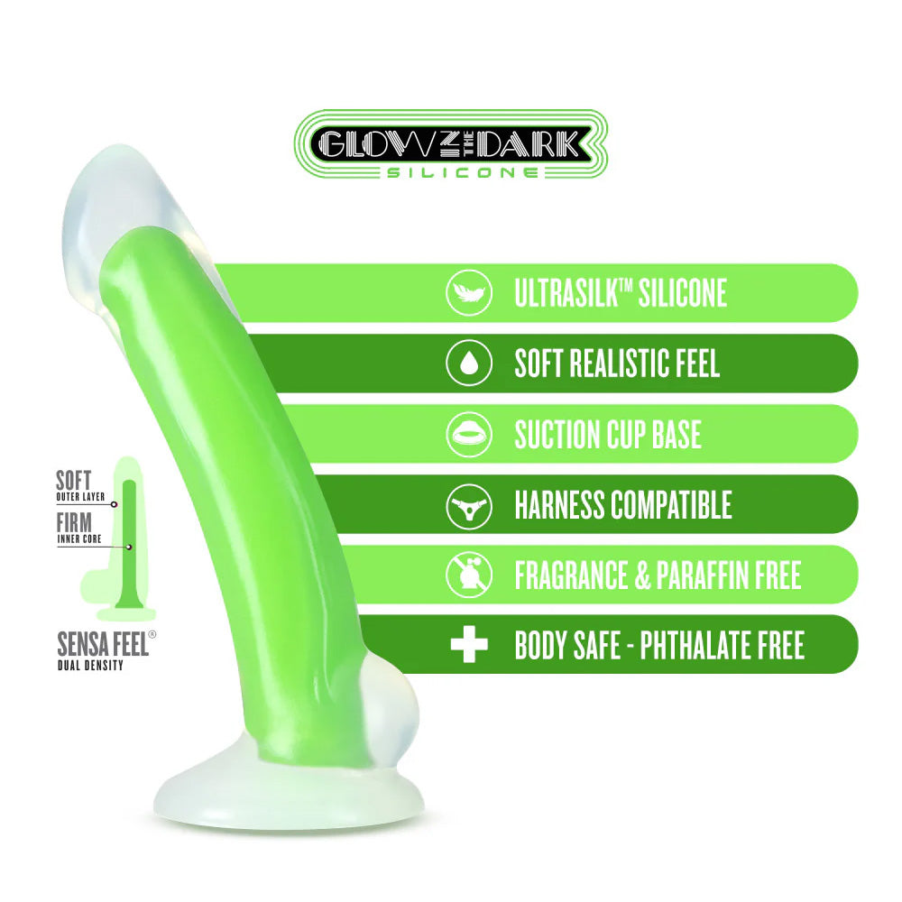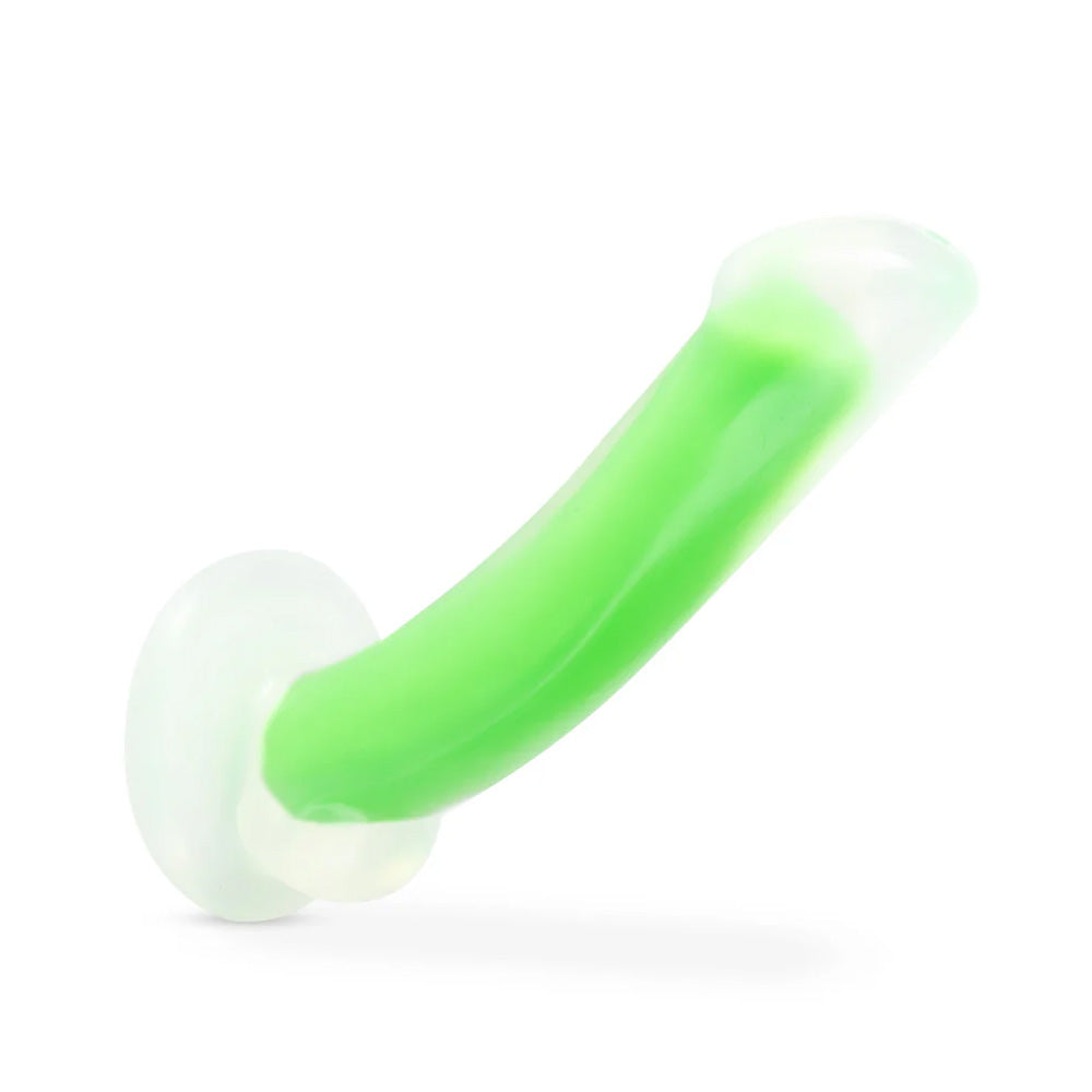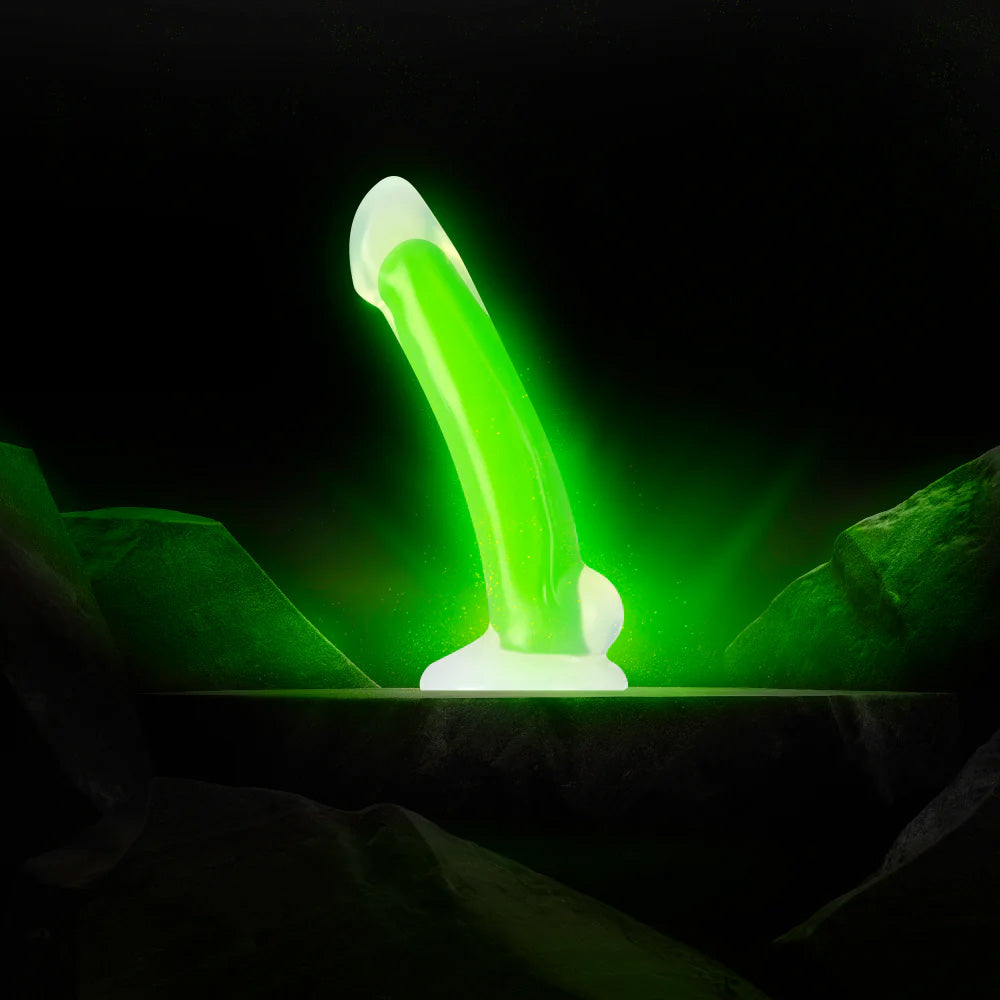 This fun and quirky dildo has a clear outer layer with a bulbous head and a smooth, curved shaft that glides beautifully against your inner walls when paired with a water-based lubricant. But of course, what makes this dildo truly unique is the glowing core inside that will keep you entertained, day and night! The core inside is firm while the clear silicone outside is soft, creating a Sensa Feel® erection-like feeling thanks to the dual-density construction that will feel just like the real deal. The ridged head gives a satisfying 'popping' sensation on insertion, while the angled shaft hits your G-spot or prostate perfectly with each thrust...