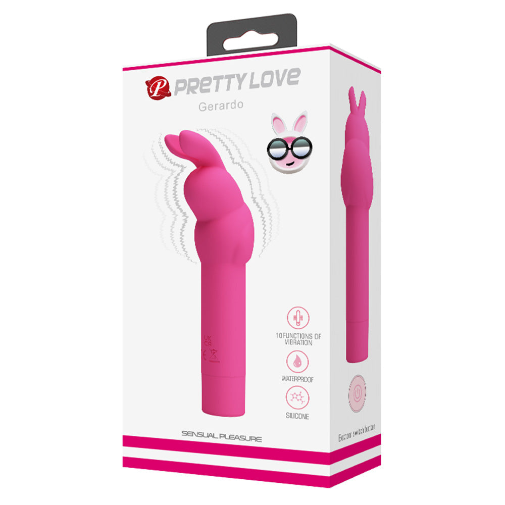 Thrill yourself in the sheets or the shower with Pretty Love's Gerardo Silicone Rabbit Mini Vibrator!