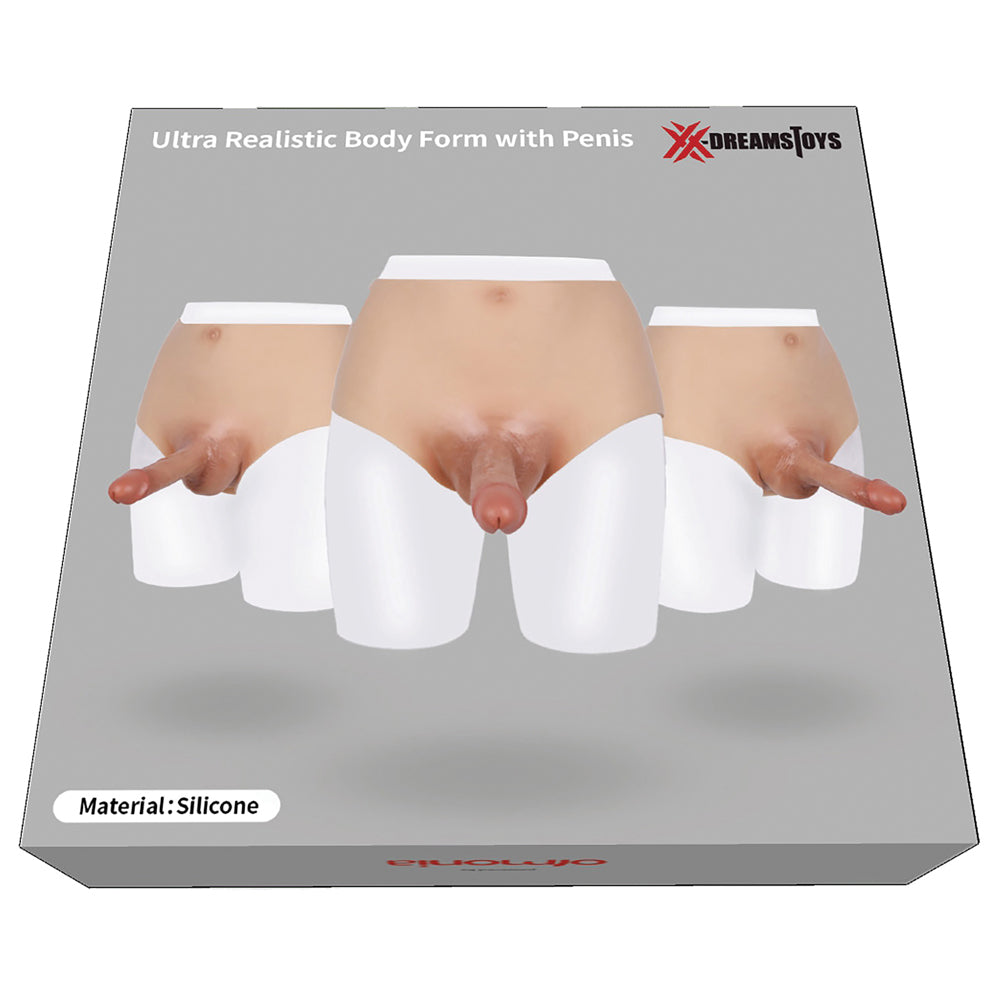 The Ultra-Realistic Silicone Penis Packer Underwear is made from body-safe medical-grade silicone that looks and feels just like real skin. The comfortable material is super-stretchy and holds its shape while you pull it on and tug everything into place. The slightly powdery finish helps to keep everything feeling silky-smooth and dry and is easy to maintain — after wearing the pants, rinse them with warm water and toy cleaner, followed by a light dusting of renewal powder to keep them soft and supple.