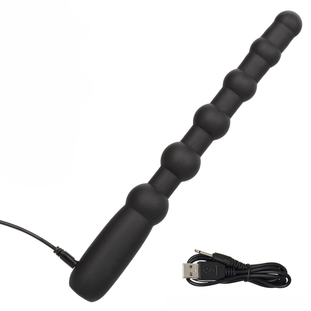 Buzz your way to booty bliss with the Rechargeable Vibrating X-10 Anal Beads from CalExotics®!