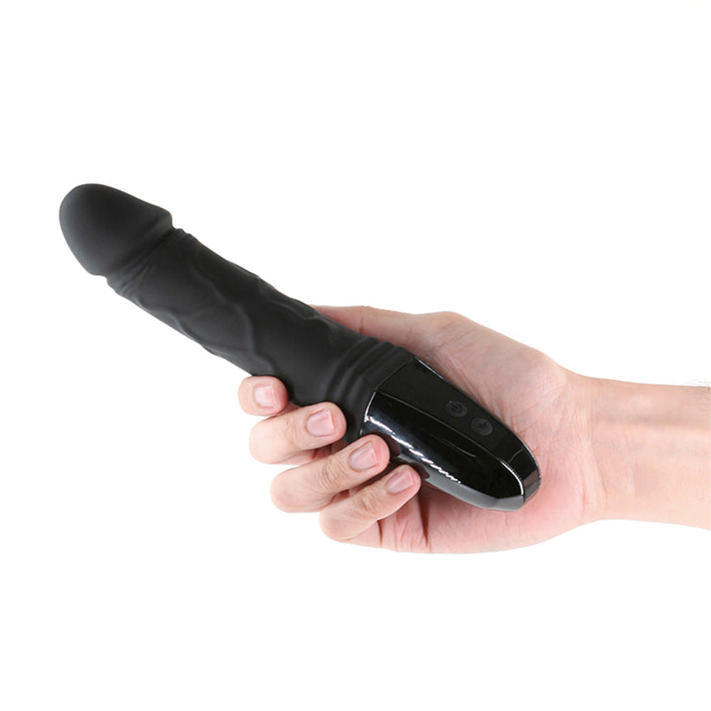 This realistically shaped vibrator features a flexible shaft that's covered in a bulging, veiny texture and topped with a phallic head for that real-feel 'popping' sensation as you insert it. It has 2 buttons on the handle that allow you to control your toy with precision and ease — hold the power button to turn the toy on in standby mode, then tap the ~ button as desired to cycle through the 12 vibration modes. Tap the power button again at any point to instantly stop the vibrations and say goodbye to those awkward close calls forever! The handle also houses a nifty LED screen that displays your current vibration mode, as well as how much battery life your vibrator has left so you'll never run out of juice in the heat of the moment...