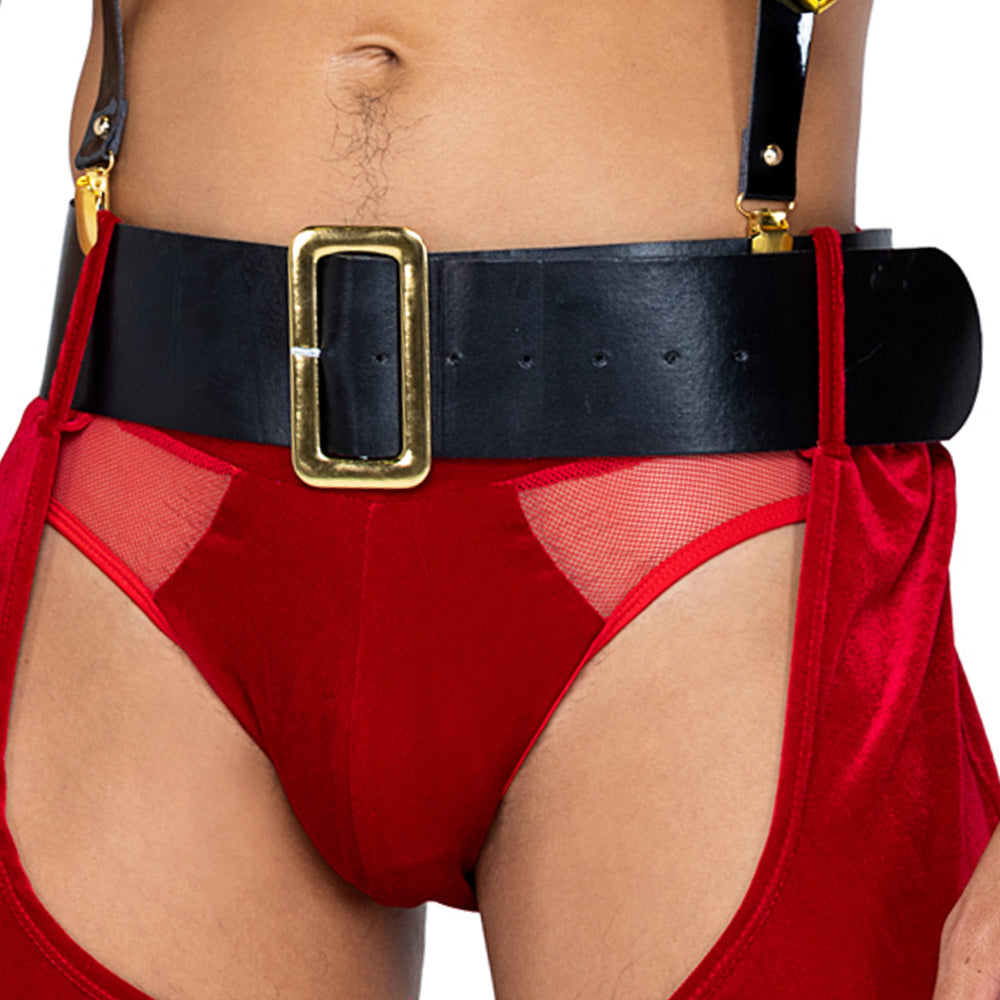 Key features of the Roma Naughty St. Nick Suspender & Chaps Costume Set: