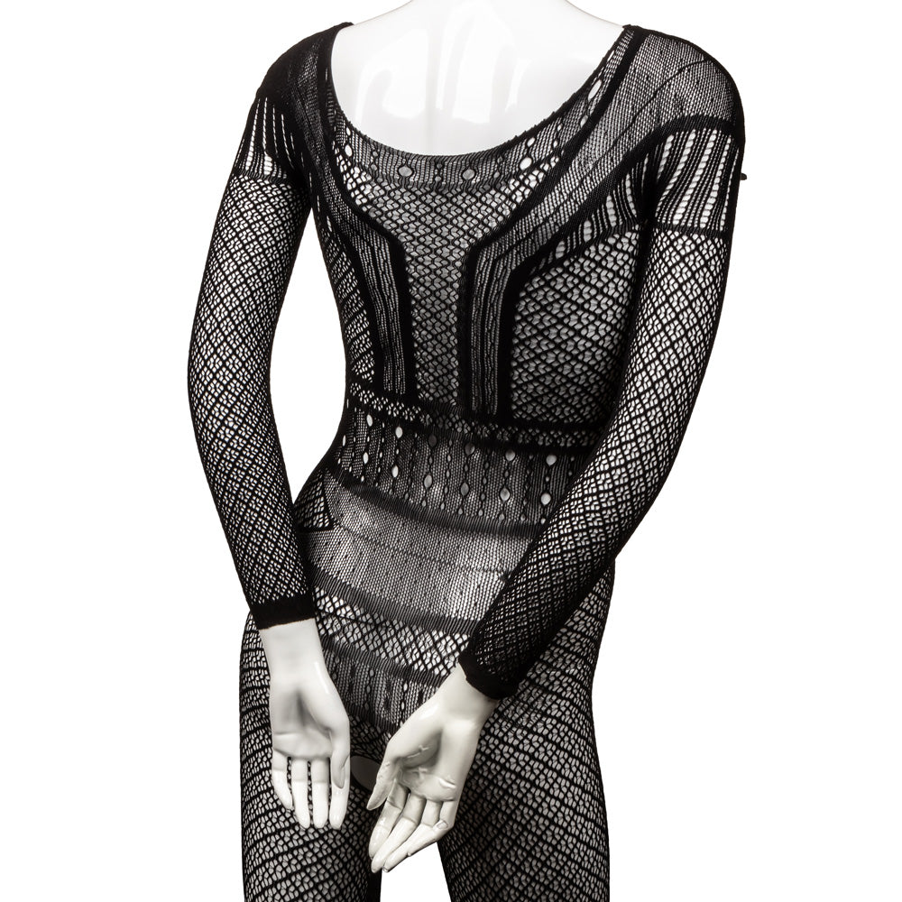 Key features of the Scandal Full-Length Crotchless Geometric Mesh Bodystocking - Curvy: