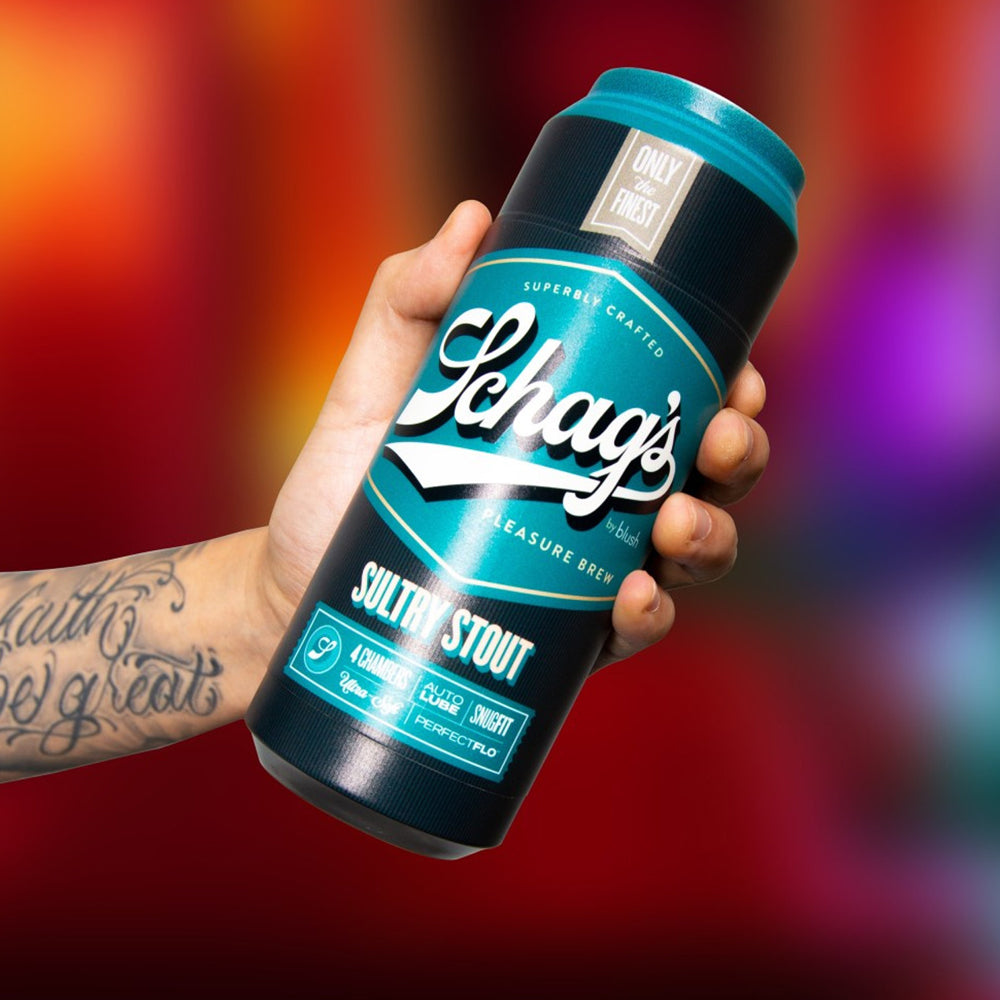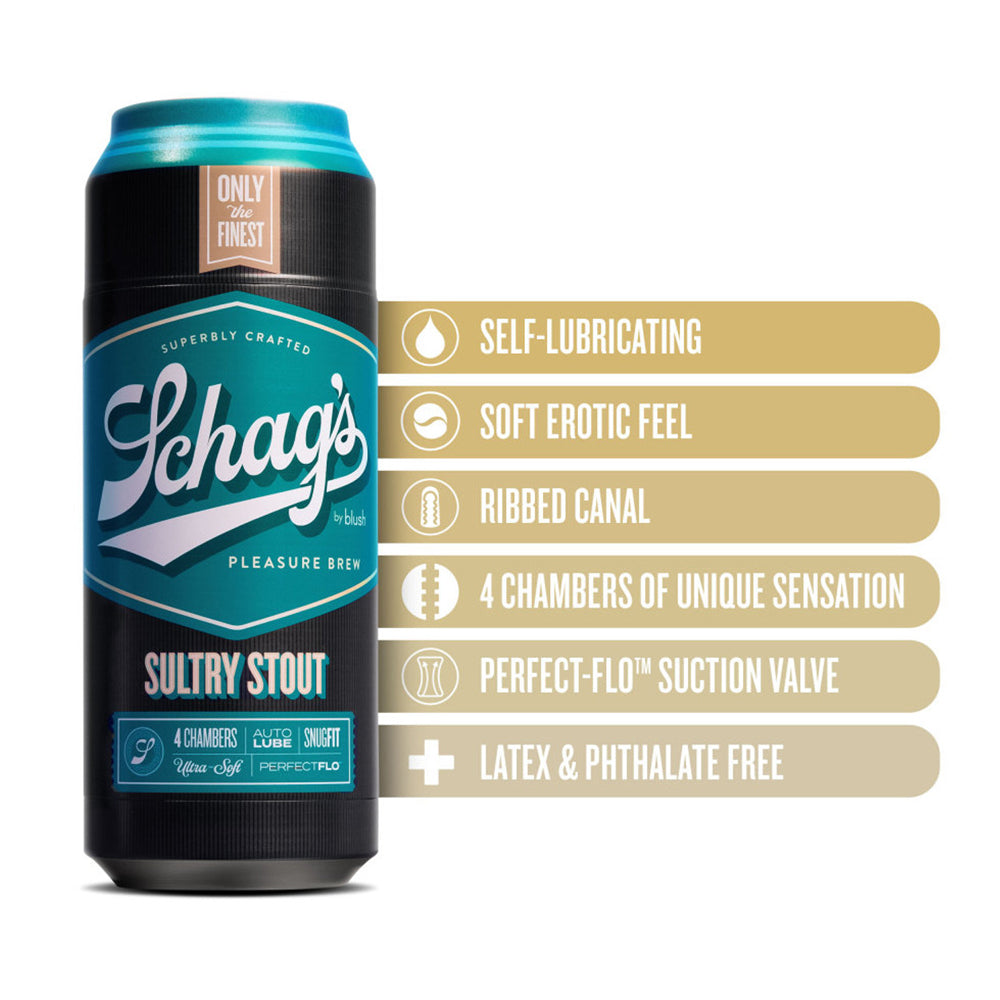 Quench your thirst for a satisfying orgasm with the Schag's Sultry Stout Self-Lubricating Beer Can Masturbator!