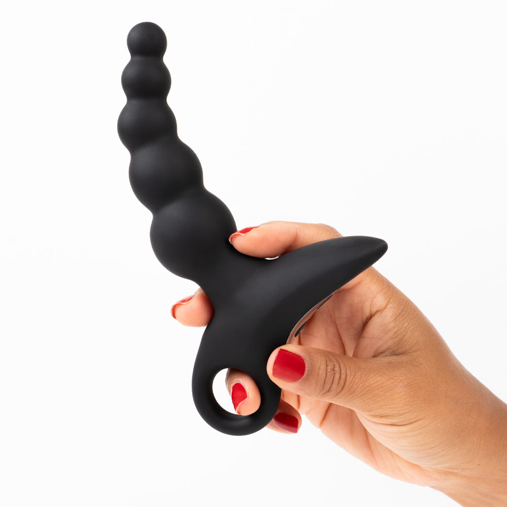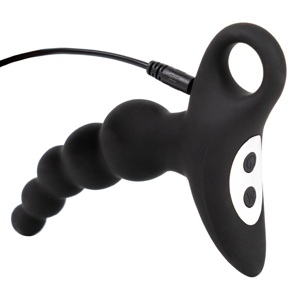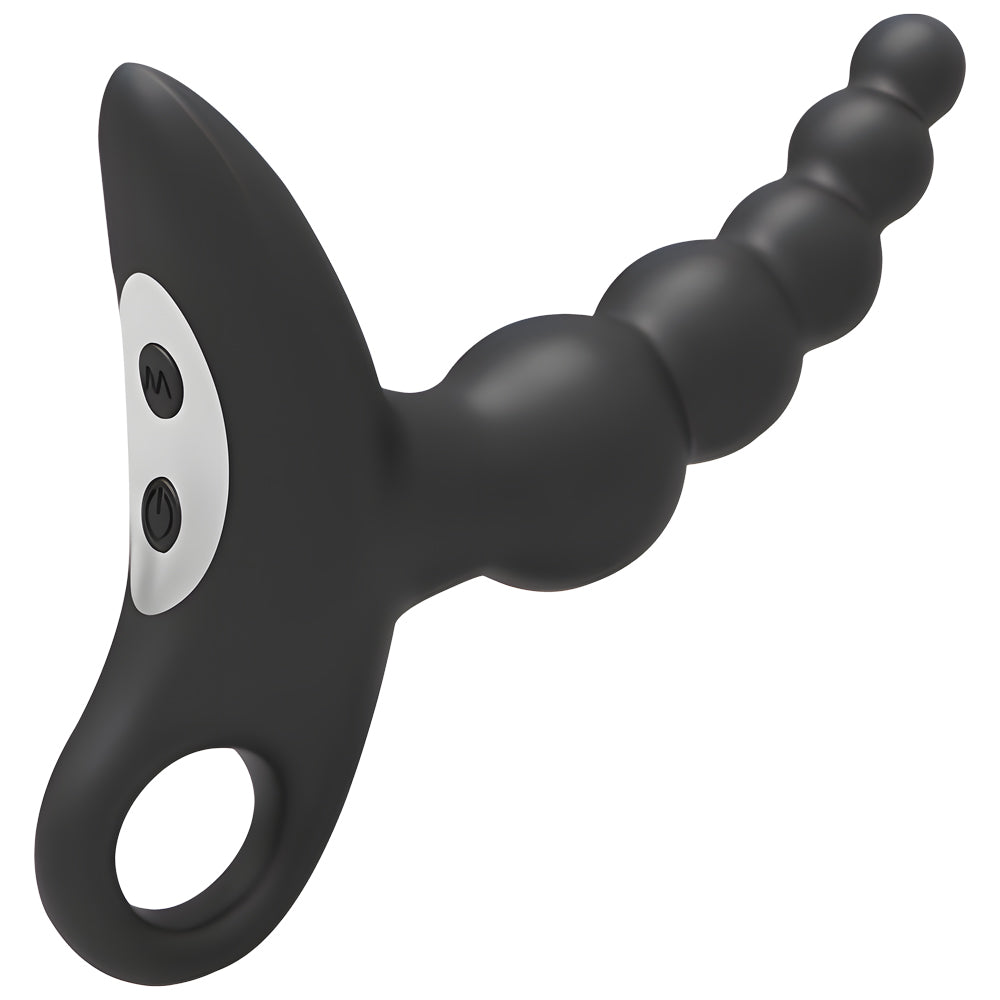 This firm yet flexible set of 5 anal beads graduate in size to slowly fill you and put the perfect amount of pressure on your inner walls as the beads 'pop' satisfyingly inside you. The sturdy, ergonomic handle features a finger loop so you (or a playmate) can simply slip your fingers inside and dip the beads in and out of yourself with ease in any position! The beads are packed with a 10-mode vibrating motor to buzz your booty to breathtaking backdoor bliss, complete with an intuitive 2-button control panel that makes playtime a fuss-free experience (hold the power button to start up the Sabre Vibrating Anal Beads on the first mode, then tap the ~ button to explore the next vibration setting).