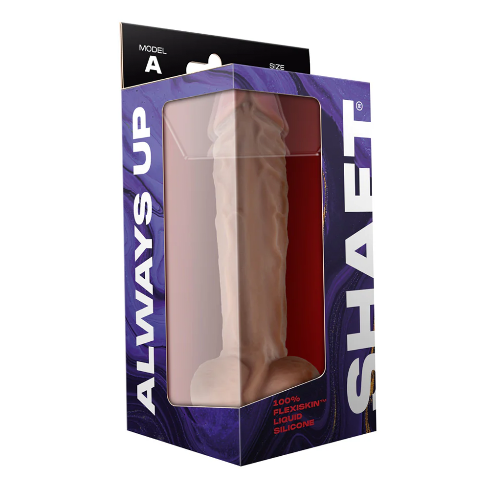 This large dildo is crafted in Shaft's Model A design, which has an ever-so-slightly curved shaft and thick testicles for a super-lifelike shape and feeling. Underneath the balls, there's a sturdy suction cup base that mounts securely to flat, solid surfaces so you can go for a hands-free solo ride in any position you like. Feeling generous? Slip the suction cup into a strap-on harness and share the love with a partner — after all, there's plenty to go around! After the fun is done, just rinse the waterproof silicone material with warm water and toy cleaner to get your dildo ready for your next ride.