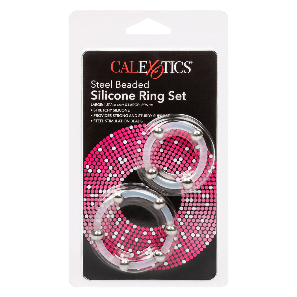 Take your cock ring experience to the next level with the Steel Beaded Silicone Ring Set!