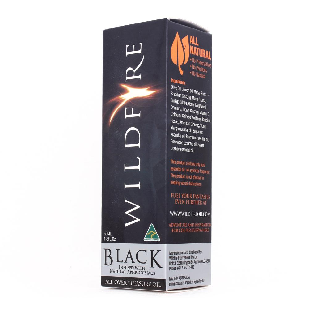 The Wildfire Black Oil's vivid aroma comes from pure essential oils, not synthetic fragrances, and the oil has a 100% natural recipe that's made right here in Australia. Whether you're indulging yourself or your partner in an erotic massage, once you go Black, you'll never go back...