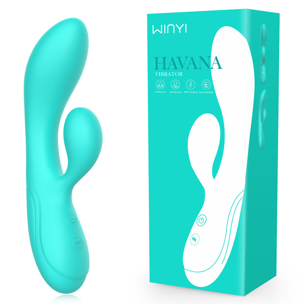Enjoy dual stimulation in discretion and privacy with the Havana Whisper-Quiet Silicone Rabbit Vibrator by Winyi!