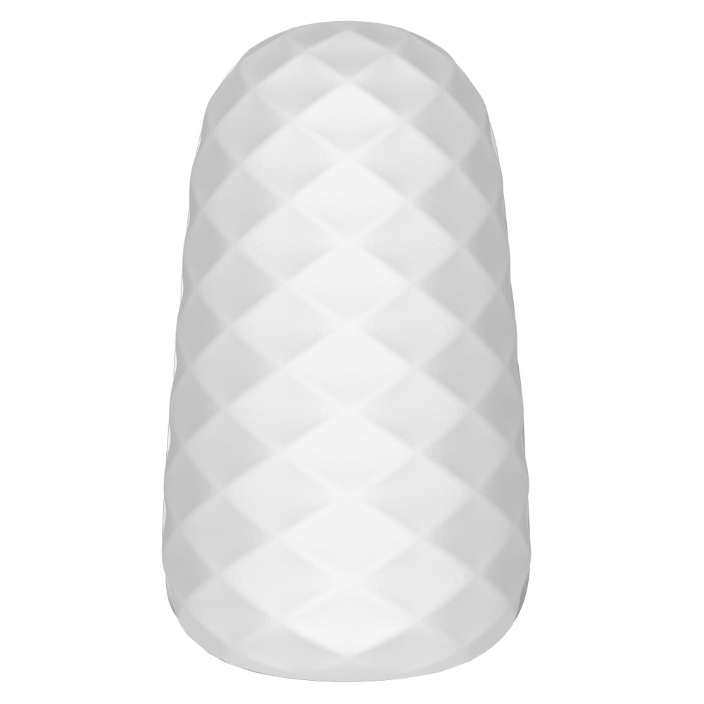 This stroker is made from super-stretchy material and filled with a tantalising texture that massages you all over with a series of rounded ridges and plush pleasure nodes. The hydroactive material is self-lubricating when you add water or saliva, giving you a slick and slippery stroke at a moment's notice! The compact size is perfect for on-the-go pleasure and features a faceted texture on the exterior to give you a secure grip while stroking away. The waterproof material makes for easy cleanup and to top it off, the hard outer case also doubles as a storage case and even has a drying stand inside for hassle-free toy care!