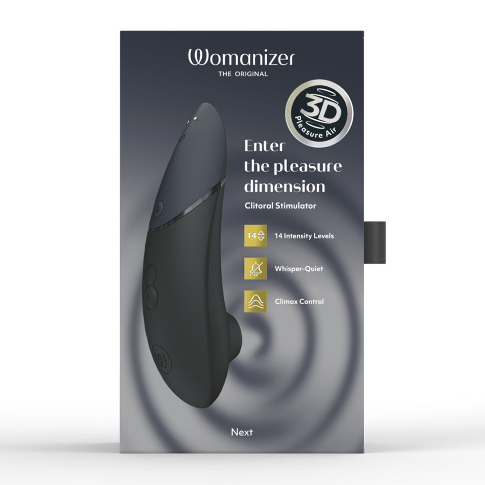 This updated version of the bestselling clitoral stimulator comes packed with Womanizer's patented Pleasure Air™ Technology, now with thrilling 3D tech for a richer, fuller feeling. Pleasure Air Technology directs air pressure waves to the clitoris for contactless stimulation that provides orgasmic, oral-like sensations that won't overwhelm the sensitive clitoral tissue, even through multiple orgasms! The Womanizer Next adds an extra dimension to your fun with 3 thrilling new Climax Control modes that reach lower depths than before — each of the 14 Pleasure Air intensities has 3 levels of Climax Control, which deepens the air pressure waves for even more powerful pleasure at the touch of a single button.