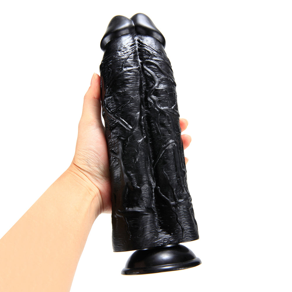 This realistically shaped dual dildo is moulded to resemble two girthy penises aligned together, with double the phallic heads and double the veiny shafts for double the fun! The soft and smooth PVC glides wonderfully inside you when paired with a generous squirt of your favourite water-based lubricant and is the perfect firmness for effortless insertion. The Large Realistic Double Penetration Dildo sports a super-strong suction cup on its base so you can mount it to almost any flat, solid surface and enjoy a hands-free double penetration experience, or share the love around! The suction cup is compatible with most strap-on harnesses so you can treat a lover to the fullness they crave all on your own...