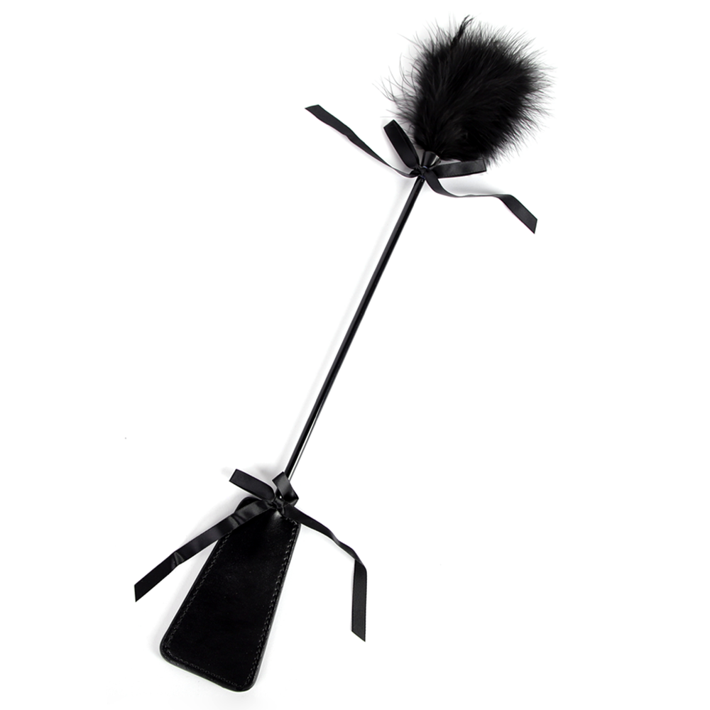 Dish out pleasure and punishment with just a flick of your wrist thanks to ZYL's Dual-Ended Feather Tickler & Faux Leather Ribbon Riding Crop!