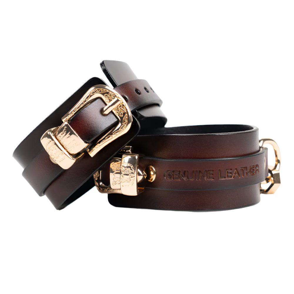 Keep your sub still in style in ZYL's Genuine Leather Western Buckle Ankle Cuffs!