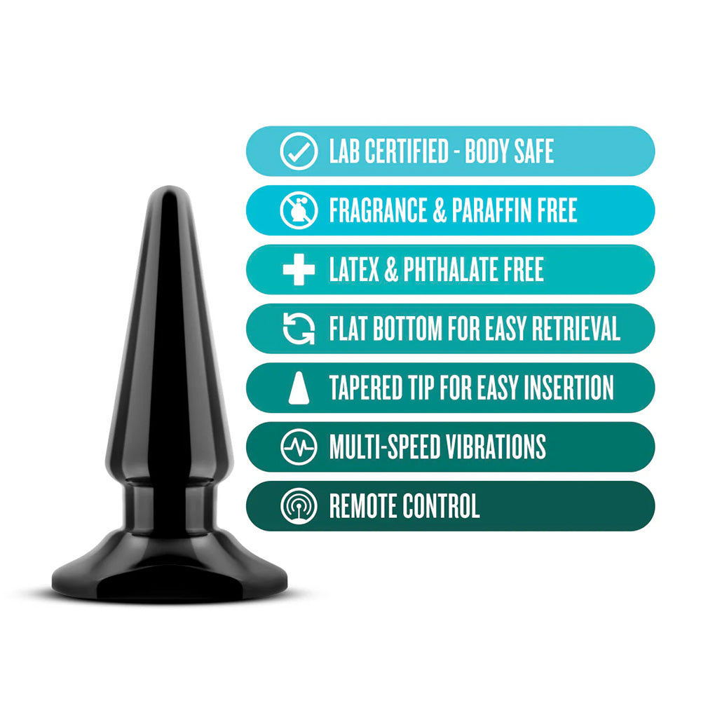 This smooth and firm butt plug has a round, tapered tip that's easy to insert and gradually flares out to put the perfect gentle pressure against your inner walls. As you ease the PVC plug inside yourself, the wide hilt will act as a stopper base to hold the plug at a safe depth between your cheeks for peace of mind and has a special notch cut into it to accommodate the remote's connecting wire for a flush finish. Once the plug is securely in place, you can use the corded remote to activate thrilling multispeed vibrations via the easy-twist control dial for precise pleasure intensity! If you're feeling extra-frisky, you can even give the remote control to a partner and let them take charge of the fun for the night...