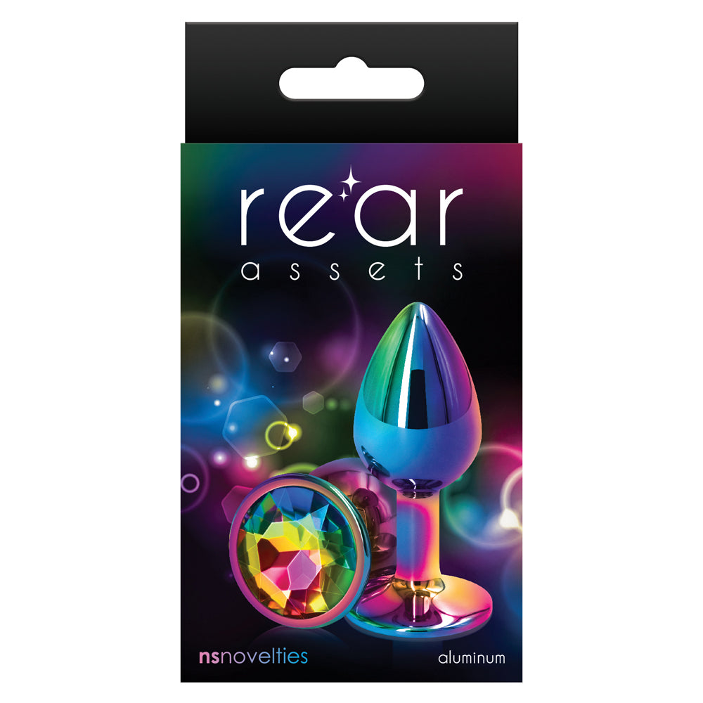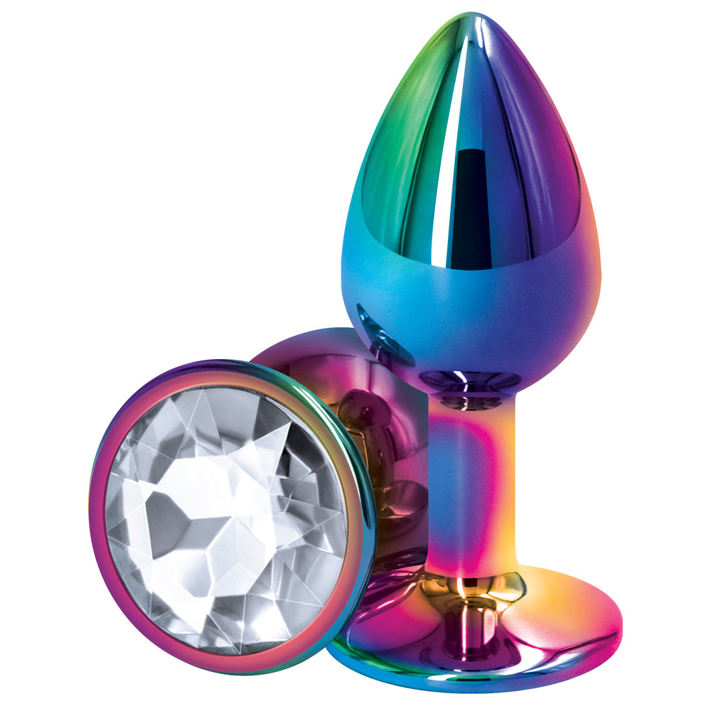 Blingify your booty with the Rear Assets Multicolour Round Gem Metal Butt Plug - Small!