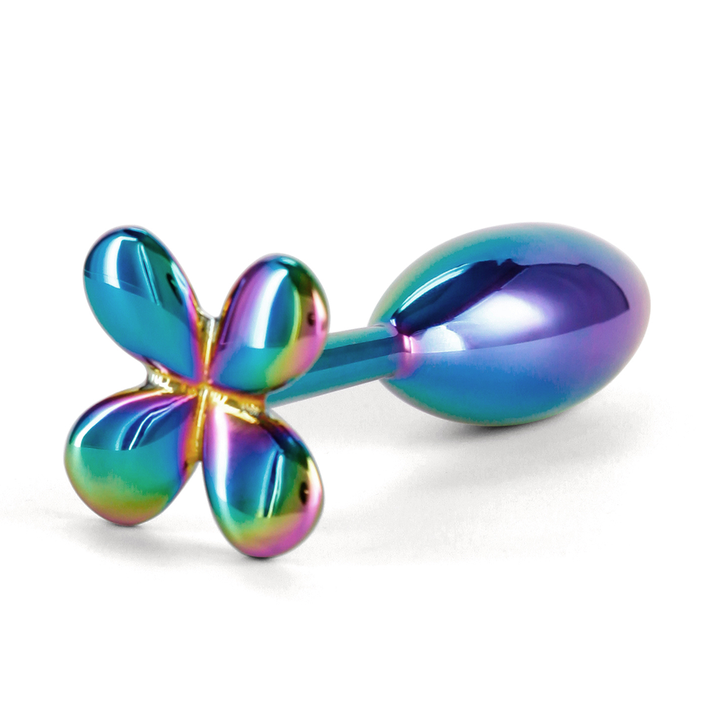 This multicolour plug is a cute and colourful anal toy that's perfect for backdoor beginners thanks to its petite and unintimidating shape. The plug is made from sleek chrome-plated aluminium in a stylish rainbow sheen that's compatible with all lubricants, perfect for easily inserting the round tapered tip. The flared base at the end of the long neck is shaped like a four-leaf clover that not only catches the eye of any onlookers but also acts as a stopper to keep the plug at a safe depth between your cheeks for peace of mind while you play!