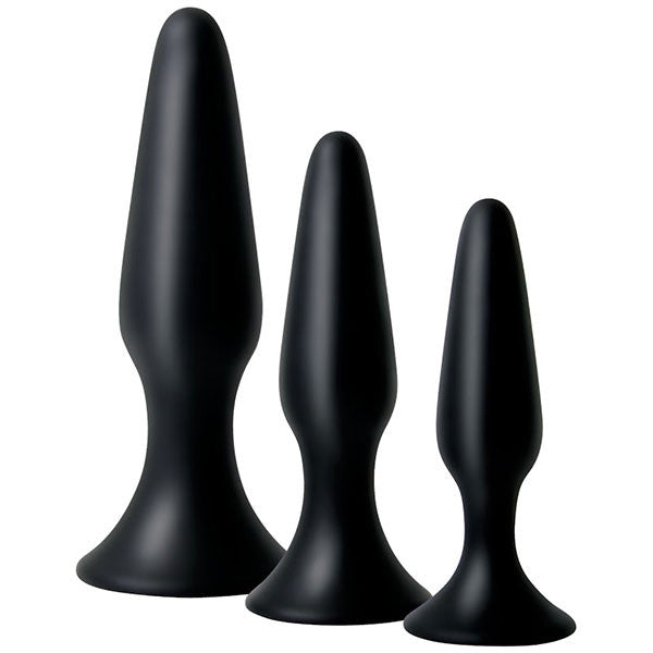 This trio of butt plugs comes in different sizes so you can gradually progress at your own pace. The tapered designs are comfortable to insert while the flared bases make them safe and easy to remove. They even double as suction cups for hands-free fun on any flat, solid surface!
