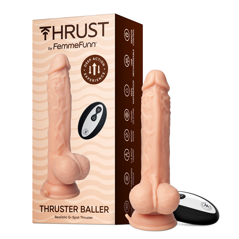 Indulge in your most lifelike ride ever with FemmeFunn's® Thruster Baller Realistic Remote Control Thrusting Dildo!