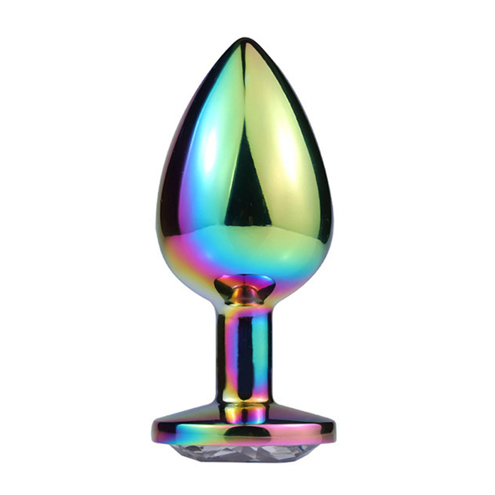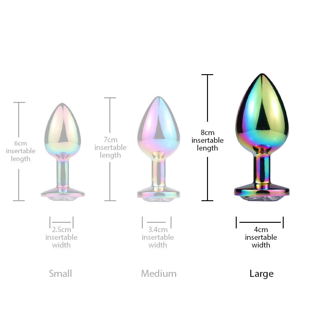 Indulge your backdoor desires in style thanks to Sexyland's Large Chroma Rainbow Metal Butt Plug With Round Gem!