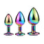 This perfectly petite anal plug is made from stylish coloured aluminium that not only looks great, it's also compatible with all types of lubricant so the tapered tip can slip into place with maximum comfort. The clear round crystal gem base contrasts beautifully with the rainbow metal and acts as a flared stopper to anchor the plug at a safe depth between your cheeks. The round base also makes removal nice and easy so you can enjoy yourself with total peace of mind from start to finish!