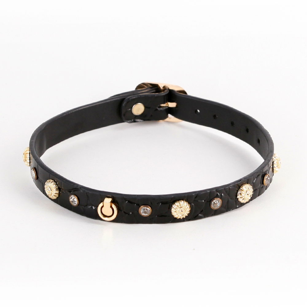 Enjoy being discreetly collared anywhere, anytime in Fetish & Fashion's Alina Faux Croc Leather Charm & Rhinestone Day Collar...