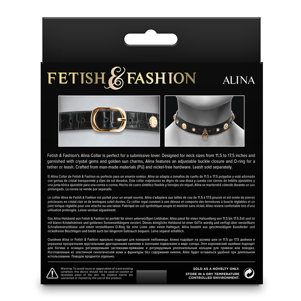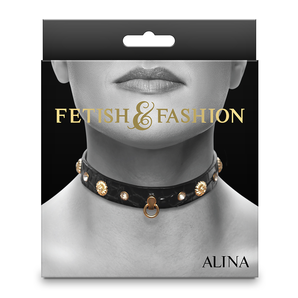 The Alina Fetish & Fashion Day Collar is made from soft faux leather with a stylish crocodile grain behind the nickel-free gold hardware, complete with a sliding keeper in the rear to tuck the tail in flush once you've found your perfect fit with the adjustable buckle. Best of all, the whole piece is vegan-friendly for everyone to enjoy!