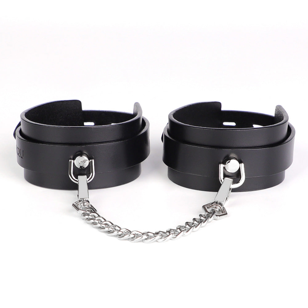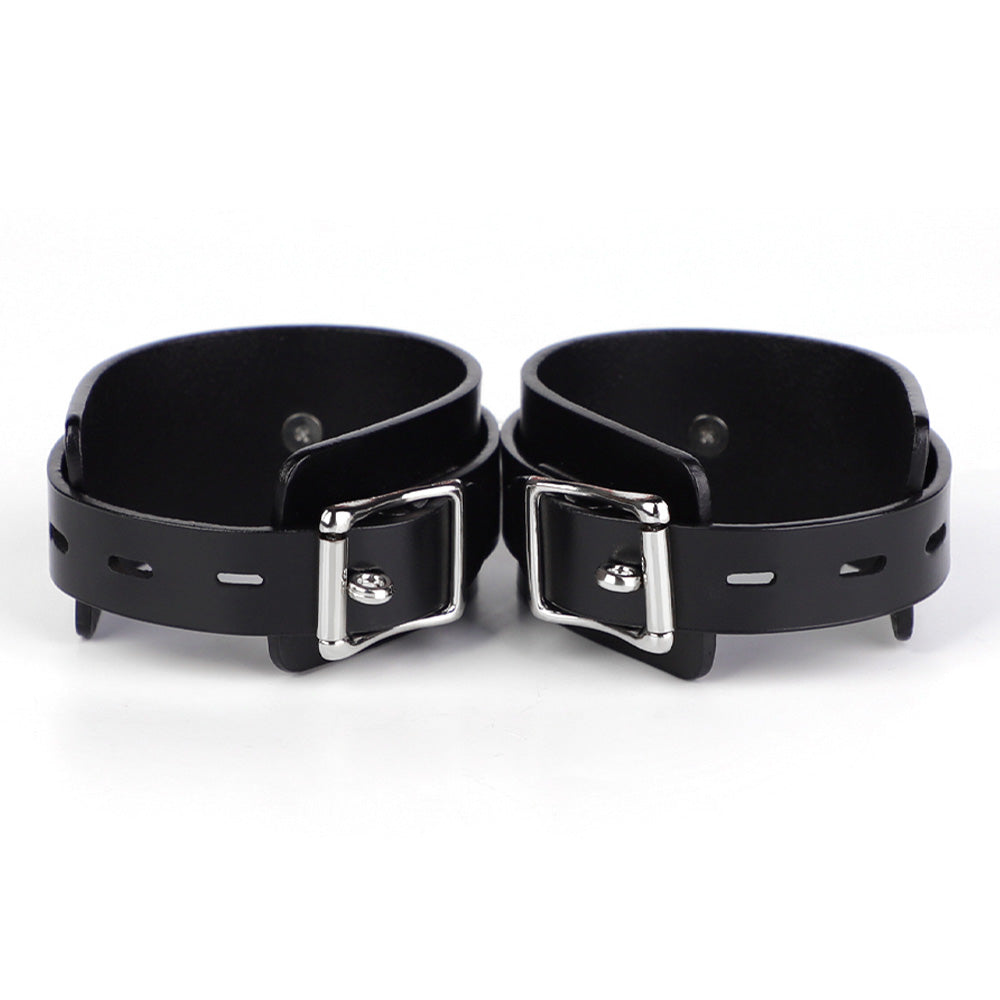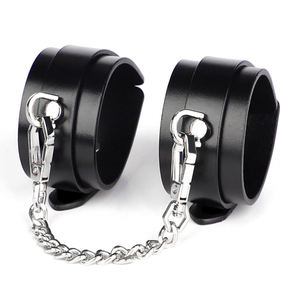 These sleek BDSM cuffs are made from genuine leather with smooth, burnished edges for a comfortable feeling against the skin and are especially well-suited to smaller ankles, preventing petite wearers from slipping out and causing mischief. They're embellished with gleaming silver hardware for an understated touch of luxe, complete with mini D-rings and an easy-attach chain with dual-ended snap hooks. The adjustable buckles let you get a secure fit around most wearers (including those small submissives) so you can easily trap your playmate in style.