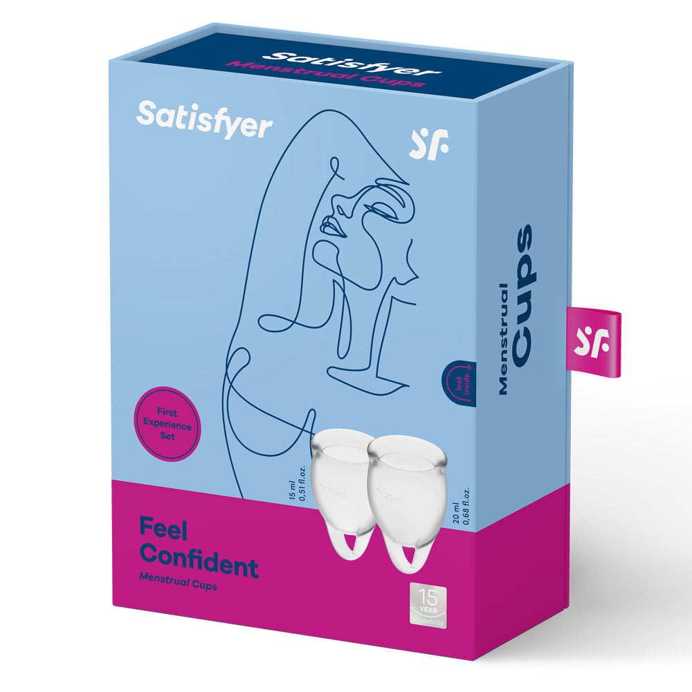 Live your best life at any time of the month with the Satisfyer 2-Pack of Feel Confident Looped Handle Menstrual Cups!