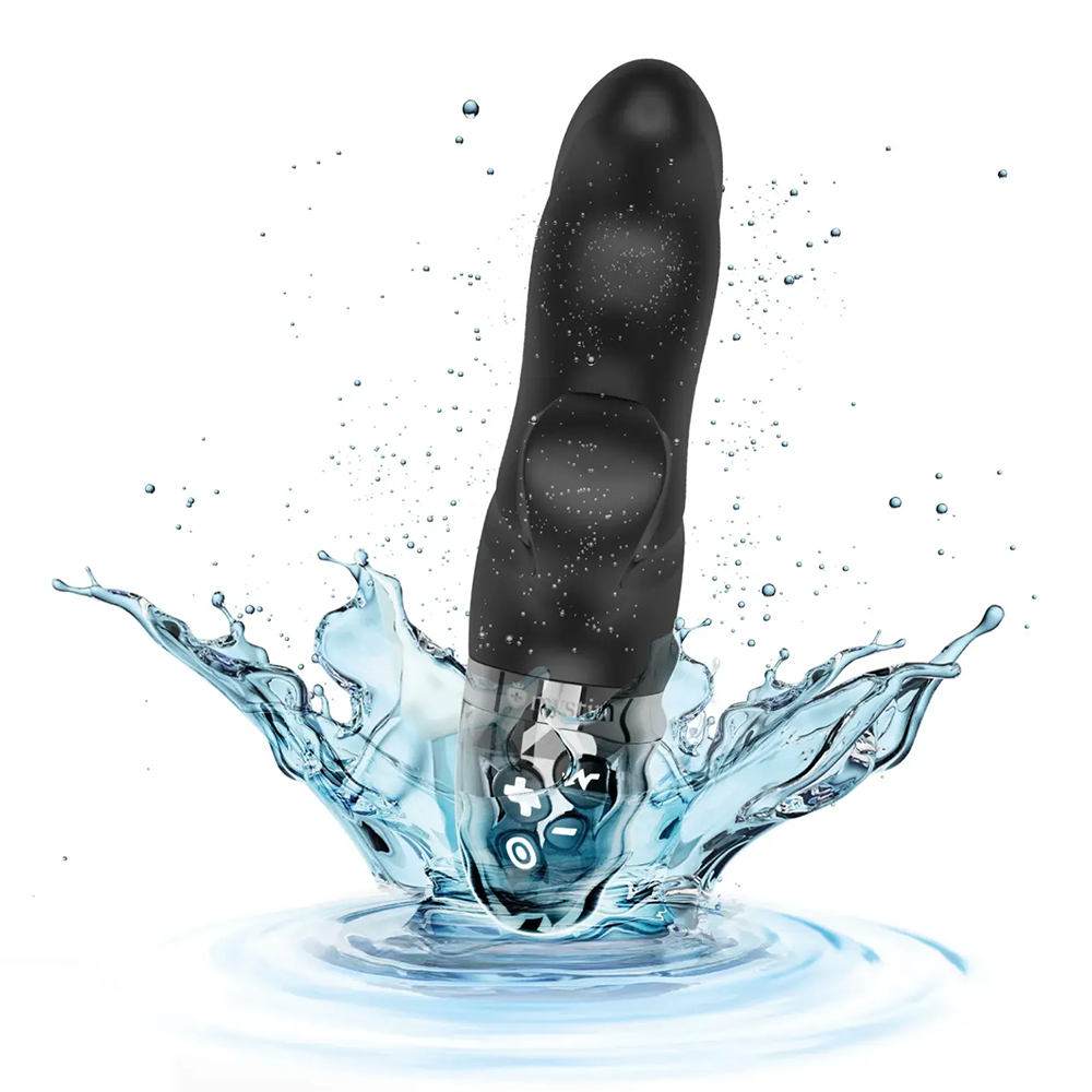 This sleek black rabbit vibrator features a contoured, bulbous design that cups your G-spot and clitoris simultaneously to deliver this toy's intense stimulation right where you want it, inside and out. It packs a punch like no other with 8 synchronised internal and external vibration patterns that your G-spot and clitoris will love, plus 5 independent electro-stimulation functions in 10 intensities each and a kegel training mode! This electrostimulation vibrator is a bipolar toy, with two conductive surfaces running along the sides of the G-spot shaft. The electro-stimulation settings use gentle intermittent electric pulses that cause your kegel muscles to automatically contract, leading to a stronger, tighter, more toned pelvic floor. This can result in faster recovery after giving birth, improved continence, and orgasms that are more frequent and more intense for seriously explosive climaxes — what's not to love?