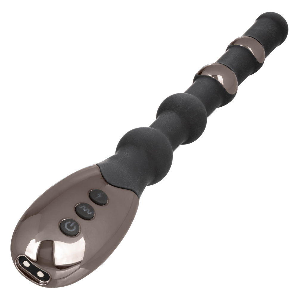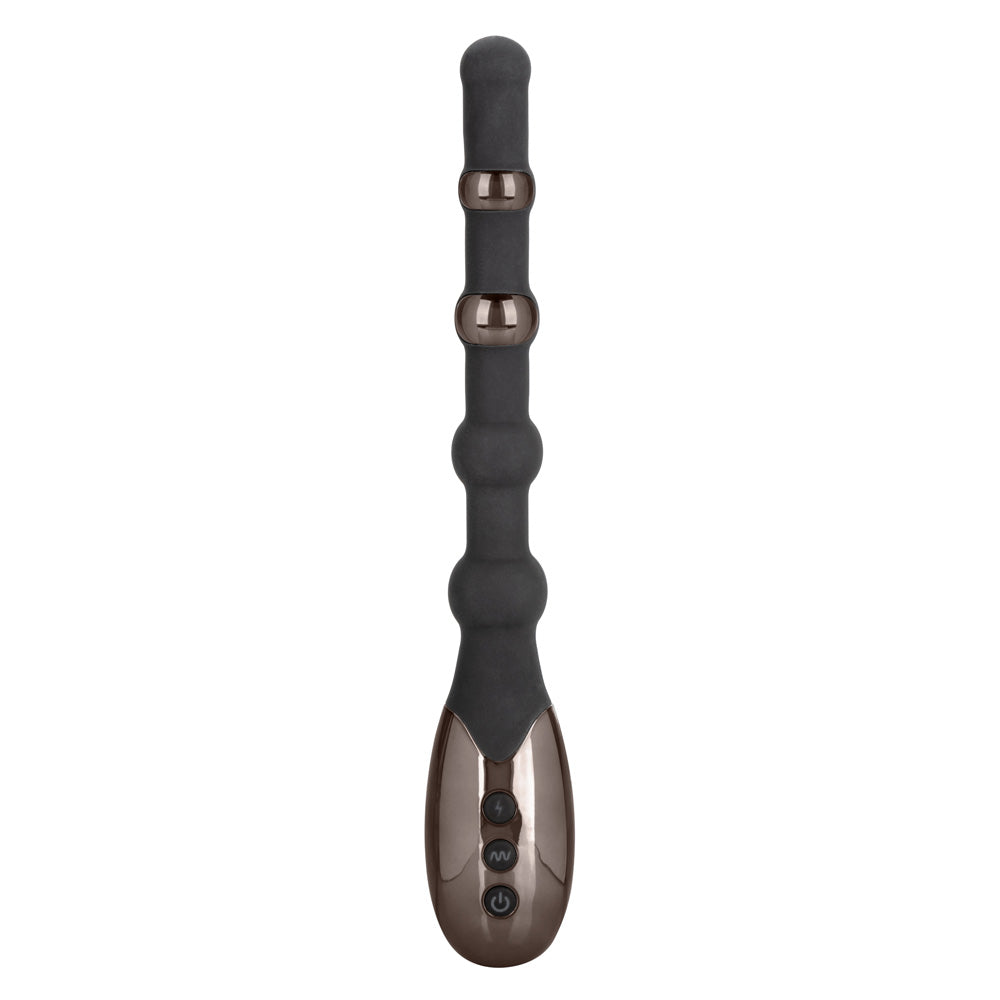 This flexible 5-bead massager is packed with 7 vibration modes and 5 levels of electro-stimulation to send you soaring higher than ever! The slim and bendy wand is easy to insert and conforms to your body's movements as you gently probe your depths, positioning the 2 conductive e-stim beads exactly where you want them...