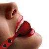 This ball gag has a solid silicone design that makes it impossible for the wearer to speak and also helps to muffle their moans if you don't want to hear a single peep out of them! The sleek leather straps have 8 holes to accommodate small to average head sizes, plus a dual buckle for a secure fit in the rear. The straps are completely free from visible stitching for a streamlined look, and the sturdy silver metal hardware ensures this gag can withstand any mischief your sub might try to pull to escape...