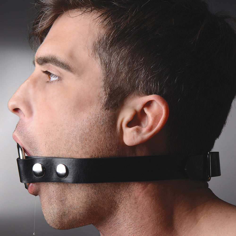 This gag pries open your lover's lips with a durable duo of steel O-rings so you have easy access to their mouth and throat! The gag wraps around the back of their head with an adjustable buckle to suit most head sizes, or you can remove the straps for a minimalistic look if you trust your sub won't try and escape the fun...