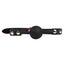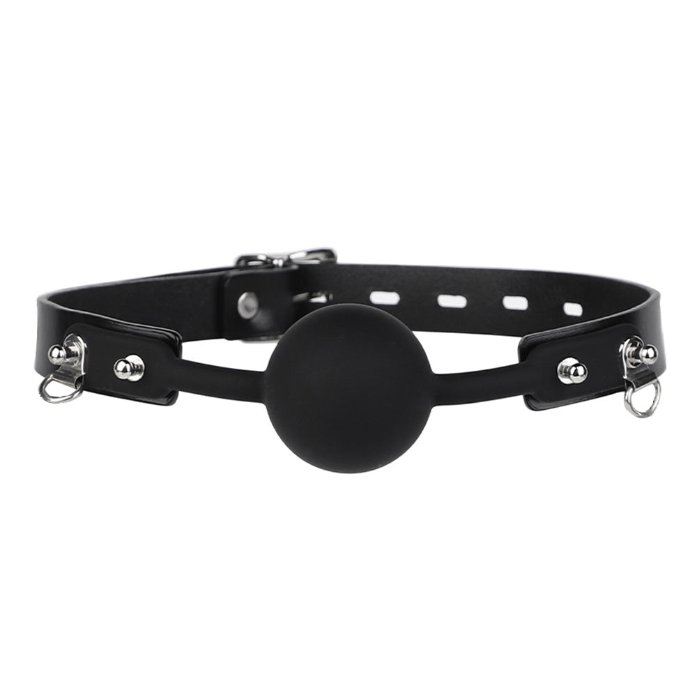 - Solid ball gag without through-holes to muffle the wearer's moans