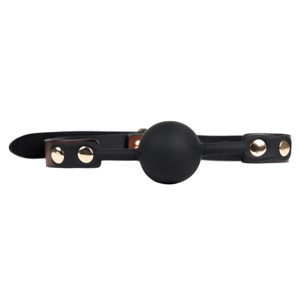 This ball gag adds an understated touch of luxury to any kinky encounter with its polished hardware and smooth, sleek genuine leather strap that adjusts to fit all sizes of wearer. The solid ball has no through holes so the wearer's groans are muffled and is made from smooth silicone for a soft, comfortable finish against the teeth that's also hypoallergenic and easy to clean after playtime. The adjustable buckle is also lockable (padlock sold separately) for a more intense feeling of ownership and discipline that's sure to please devoted kinksters and their Masters and Mistresses alike...