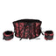 This sexy set includes a pair of adjustable cuffs and a waist-cinching corset, all in Scandal's signature opulent red and black brocade fabric. The padded Velcro® cuffs are perfect for keeping wrists in place, helplessly locked at your sides, while the corset cinches in your figure to create an alluring hourglass shape. The reinforced double stitching, universal 5-clasp design, and black ribbon corset lacing add an extra layer of security for a snug fit and a truly inescapable finish.