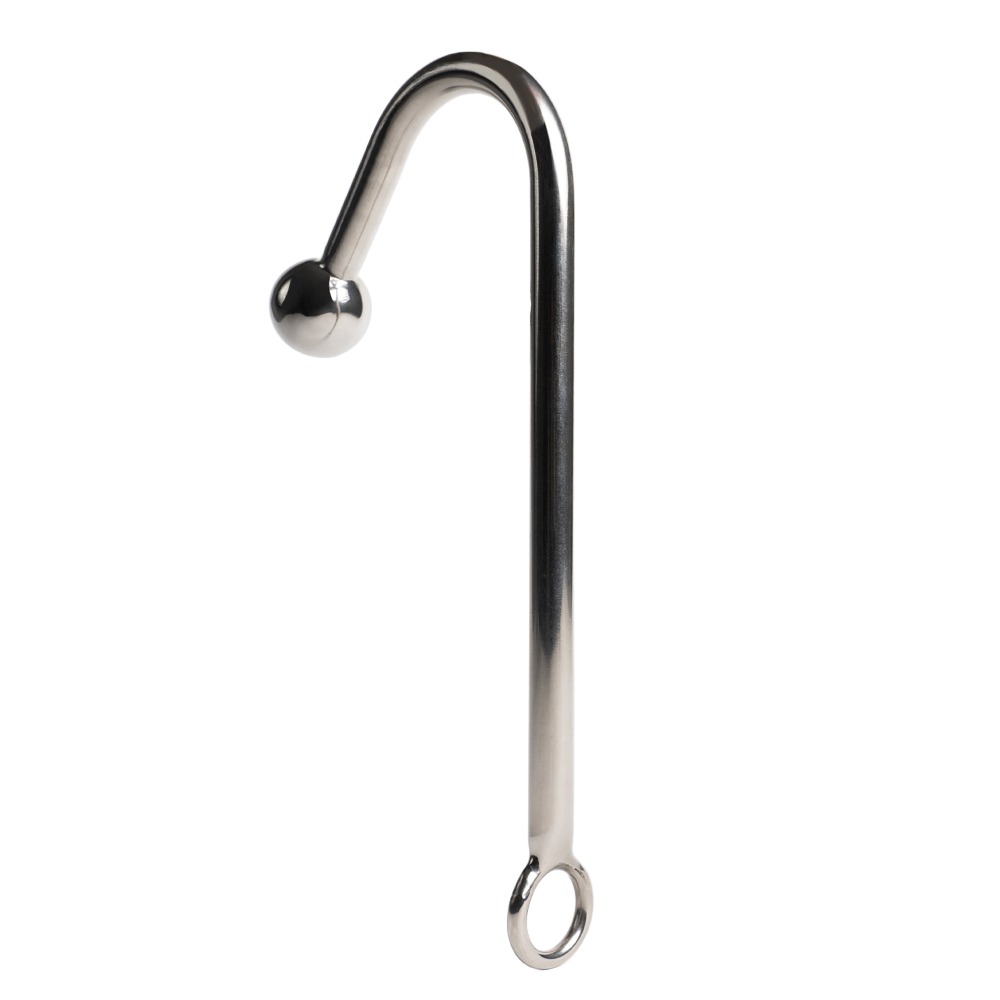 This lightweight metal hook combines the visual and sexual pleasure of predicament play, posture training, and anal play with a spherical ball to fill the anus and a ring-shaped tip at the end of the arm to attach to ropes, harnesses, and other bondage equipment. The ball fills the wearer from behind and also stimulates them whenever it's tugged, depending on how generous or cruel you're feeling! For extra fun, the metal material is compatible with temperature play — dip it in cold water or wrap it in a warm towel for a few minutes to add extra thrilling sensations to your fun! The non-porous finish is compatible with all anal lubricants for smooth insertion or removal and is also easy to clean thoroughly and hygienically for body-safe play every time.