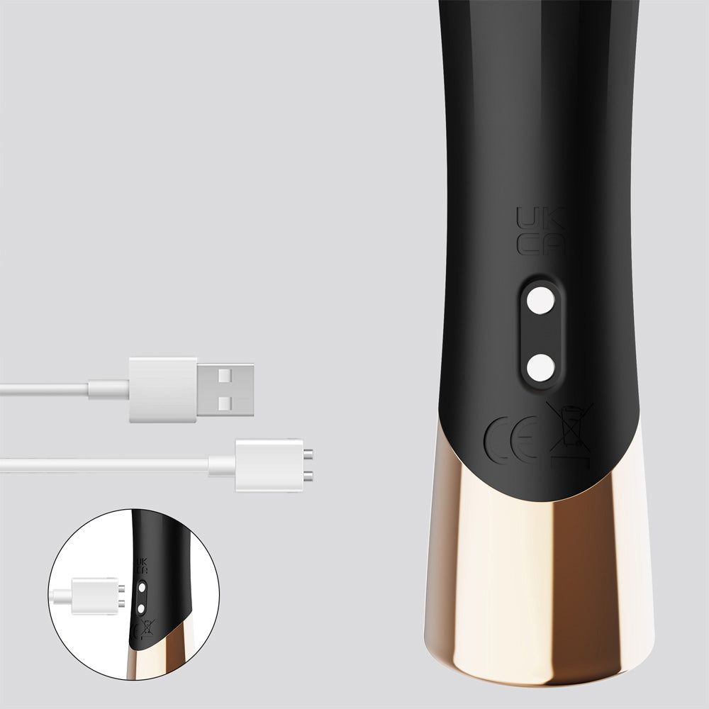 The Winyi Tracy Bullet Vibrator has a slim and compact design that's great for travelling with so you never have to leave your pleasure behind. Tracy's silky-smooth silicone body pairs beautifully with a water-based lubricant for a dreamy glide and is splash-proof for shower-time fun and easy cleaning post-play. The gold-toned base offers you a secure grip so you can navigate this toy over your intimate areas with confidence, and above that lies the magnetic charging points for easy power top-ups — just aim the cable and watch it click itself into place!