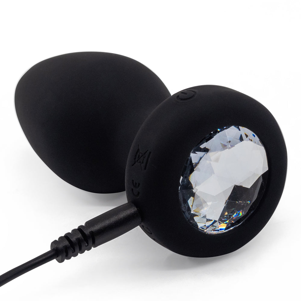 This sleek anal plug is made from silky-smooth silicone and inserts easily with the help of some water-based lubricant thanks to its tapered tip and firm neck. The wide, round base keeps the plug at a safe depth inside you and is bedazzled with a clear crystal gem so you're sure to steal the show from all angles! Once the Large Ashella Butt Plug is in place, you or a partner can activate 10 modes of thrilling vibration via the onboard button or with the wireless remote control for hands-free setting adjustment so you can enjoy your backdoor bliss, fuss-free.