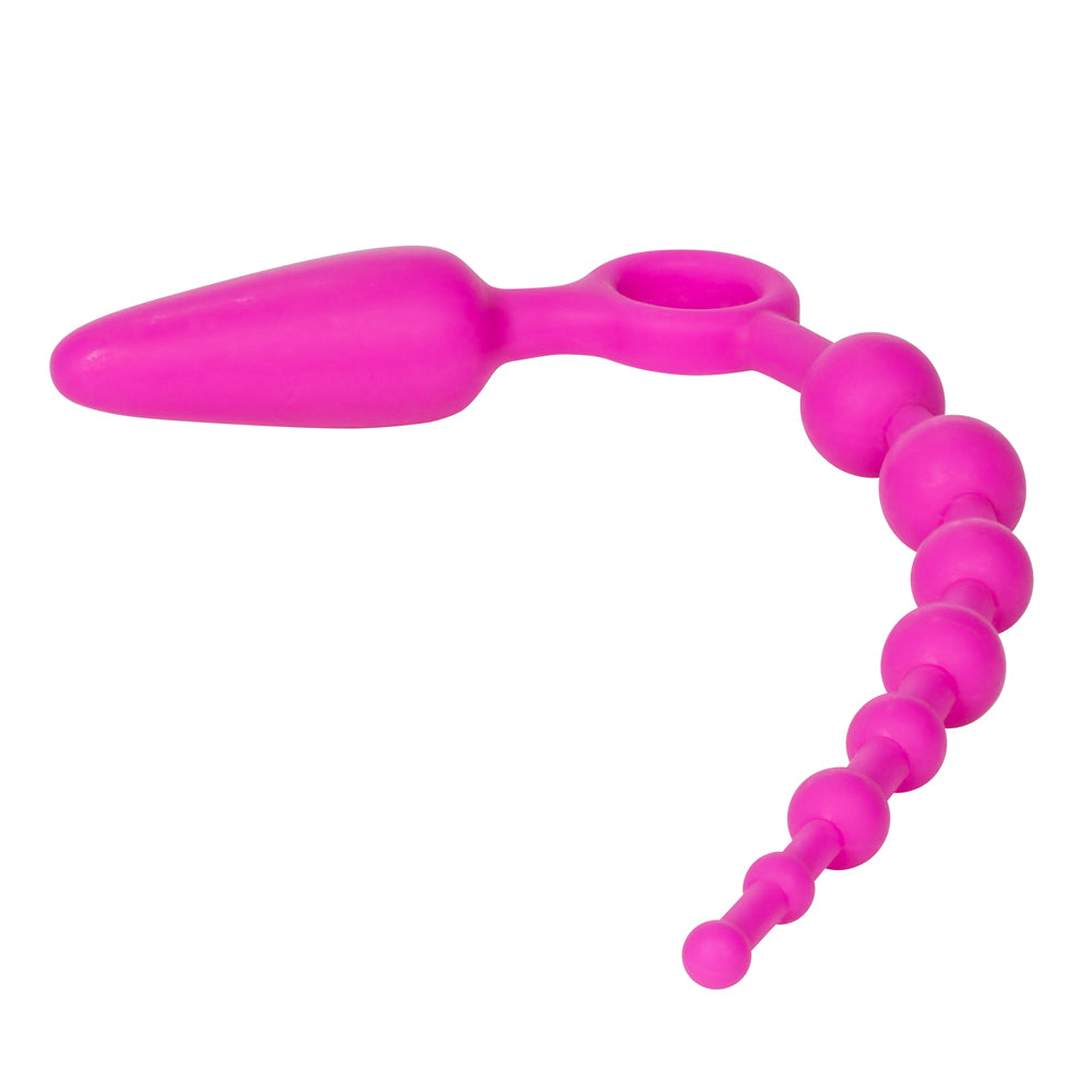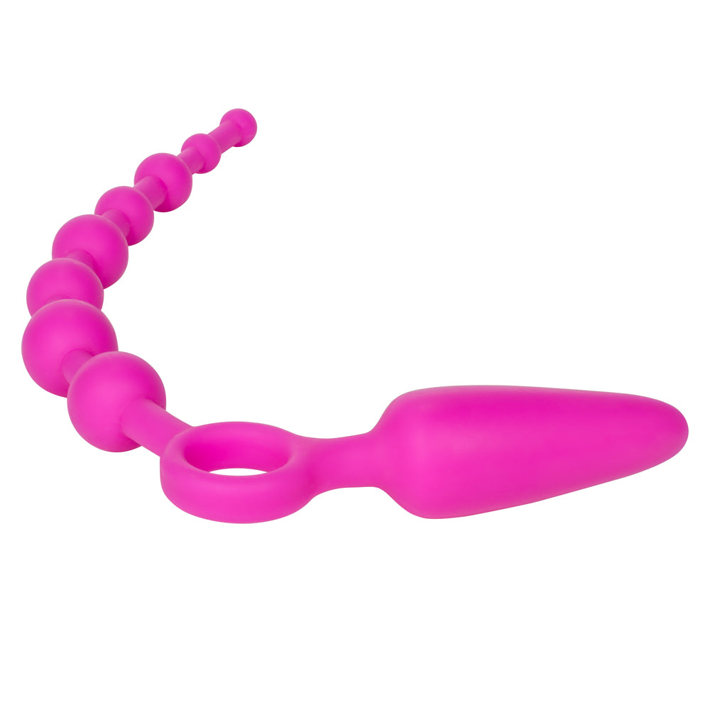 Made with premium silicone and designer silver-plated accents, the Booty Double Dare Anal Plug & Beads is both stylish and body-safe. The silicone components glide smoothly with the help of some water-based lubricant and are a cinch to clean, perfect for keeping at the ready for your next anal play adventure!
